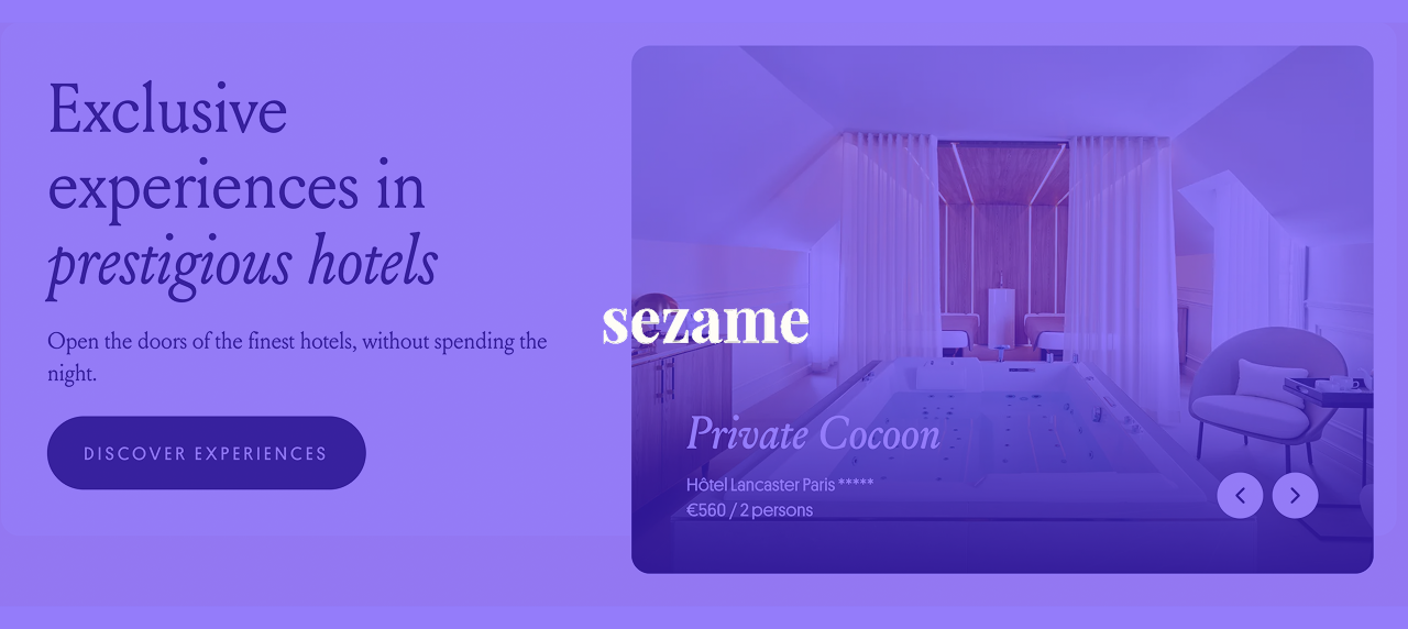 Sezame, c’est une marketplace TravelTech qui permet de réserver des expériences bien-être dans des hôtels de luxe, sans y passer la nuit. Spa, bain privé, soins : des parenthèses de quelques heures dans des lieux habituellement réservés aux client·es de l’hôtel.